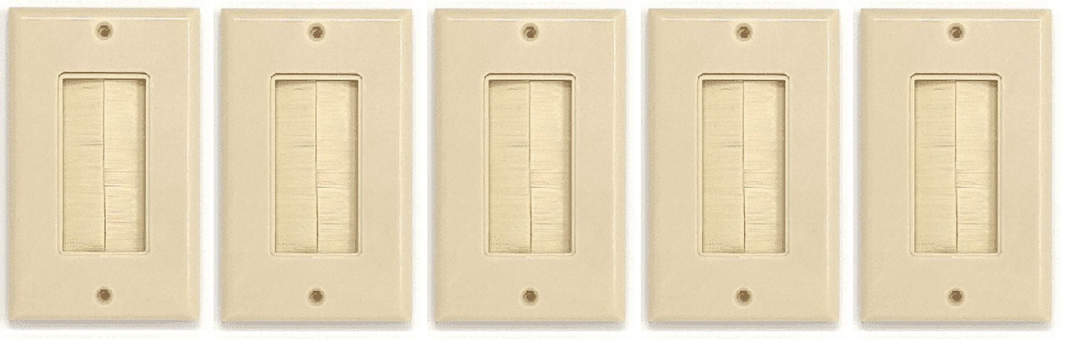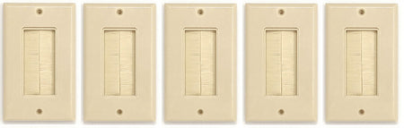 RiteAV - Single Gang Wall Plate with Brush Bristles - Ivory [Now Fits Larger Cables] - 5 Pack