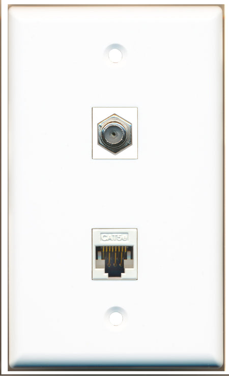 RiteAV - 1 Coax F Type and 1 Cat5e Ethernet Port Wall Plate White