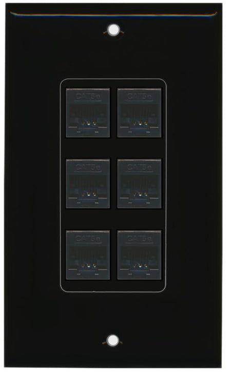 RiteAV Decorative 1 Gang 6 Port Cat5e Wall Plate - Black/Black