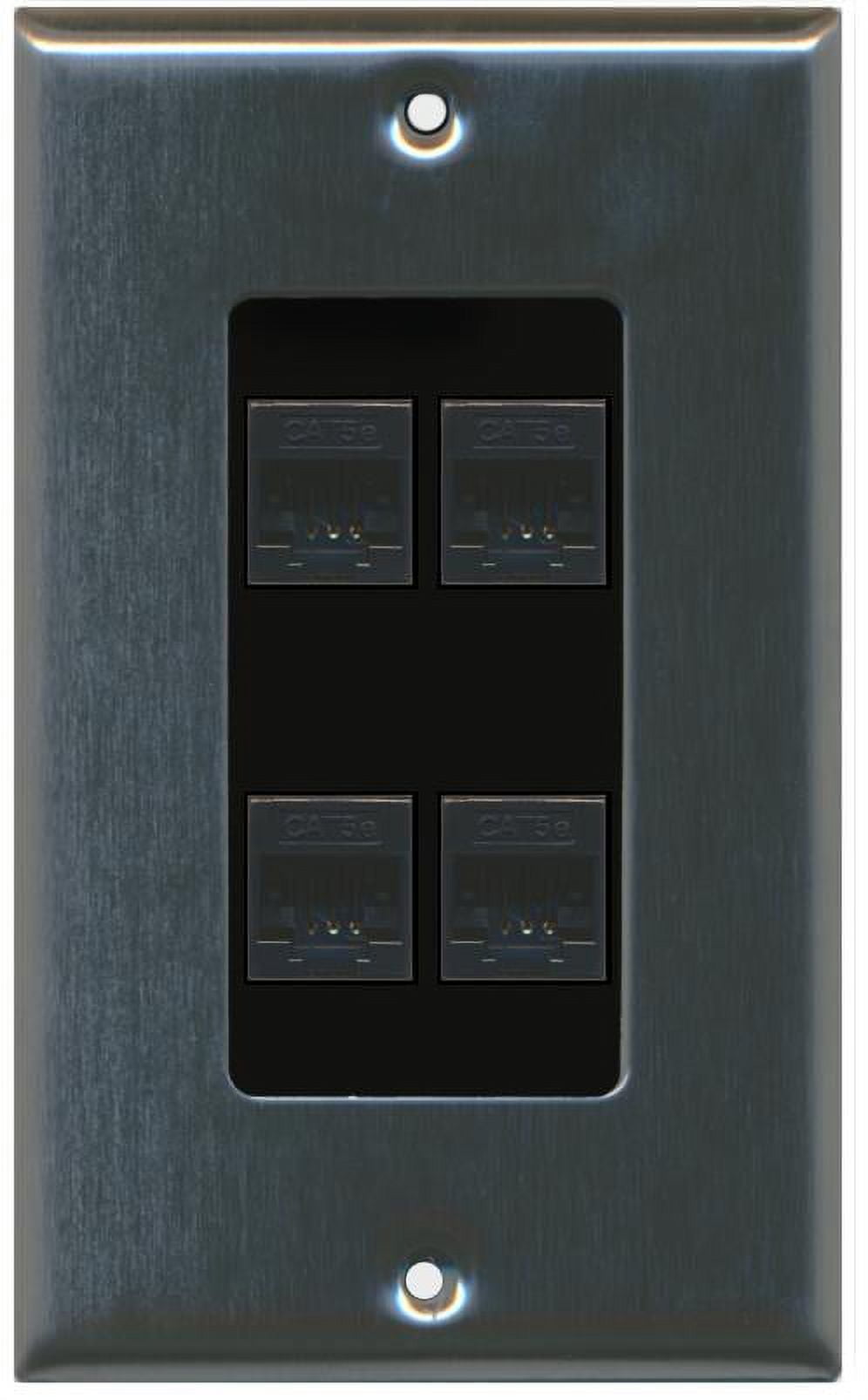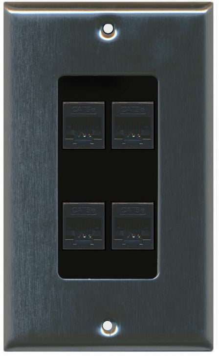 RiteAV Decorative 1 Gang 4 Port Cat5e Wall Plate - Stainless/Black