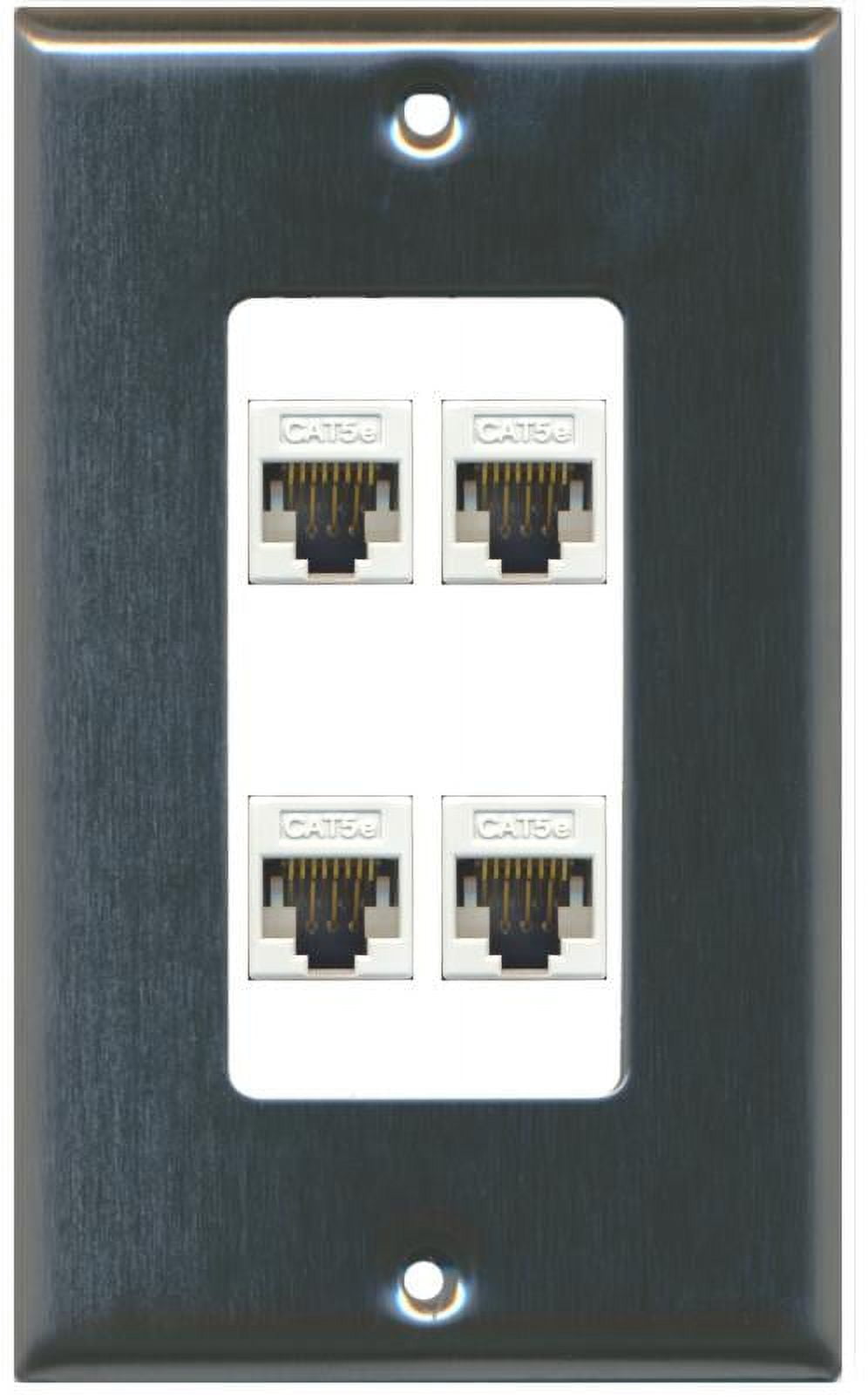 RiteAV Decorative 1 Gang 4 Port Cat5e Wall Plate - Stainless/White