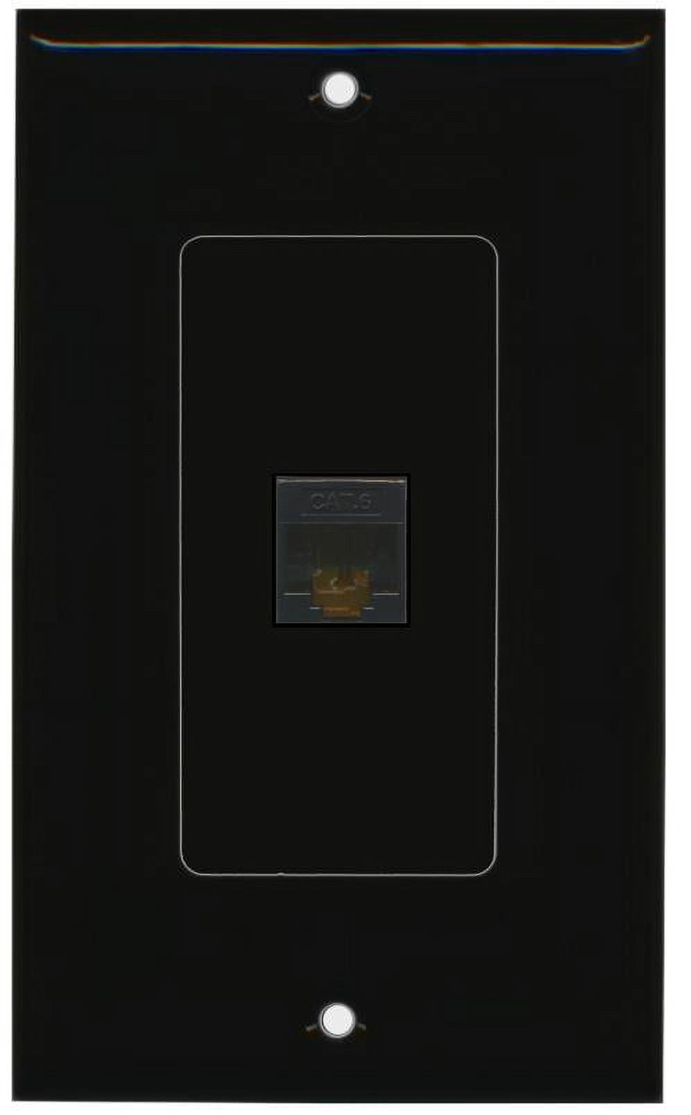 RiteAV 1 Port Cat6 Ethernet Wall Plate Jack Female-Female - 1 Gang [Black/Black]