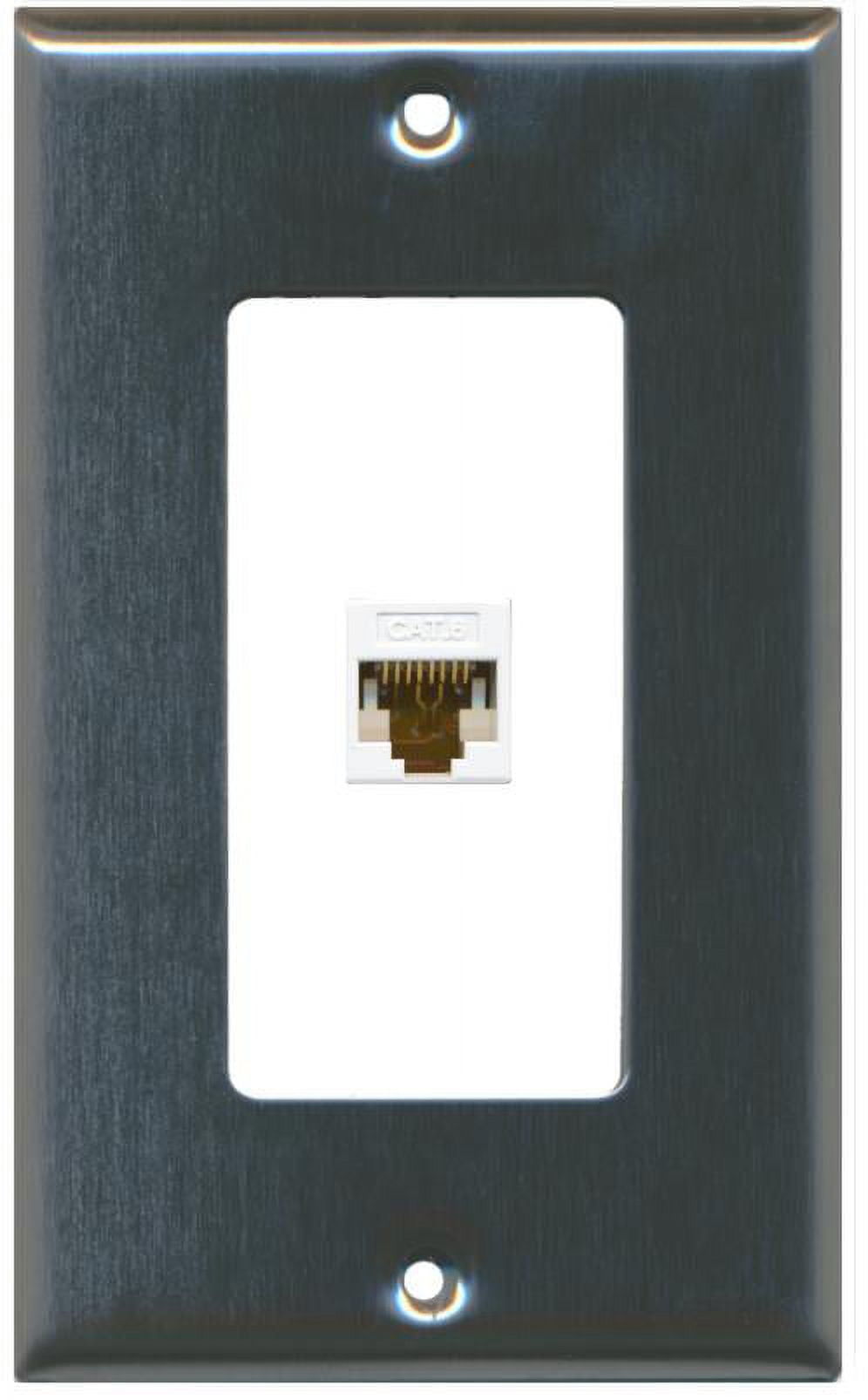 RiteAV Decorative 1 Gang 1 Port Cat6 Wall Plate - Stainless/White - Bracket Included