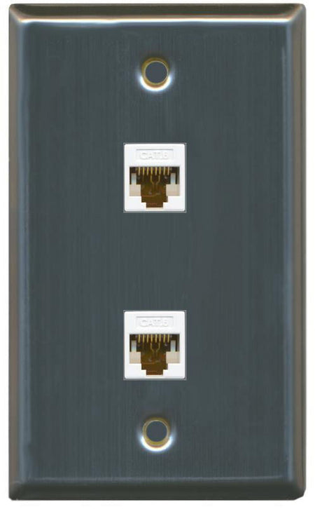 RiteAV 1 Gang 2 Port Cat6 Wall Plate - Stainless