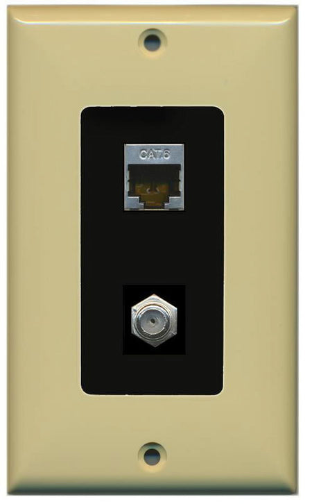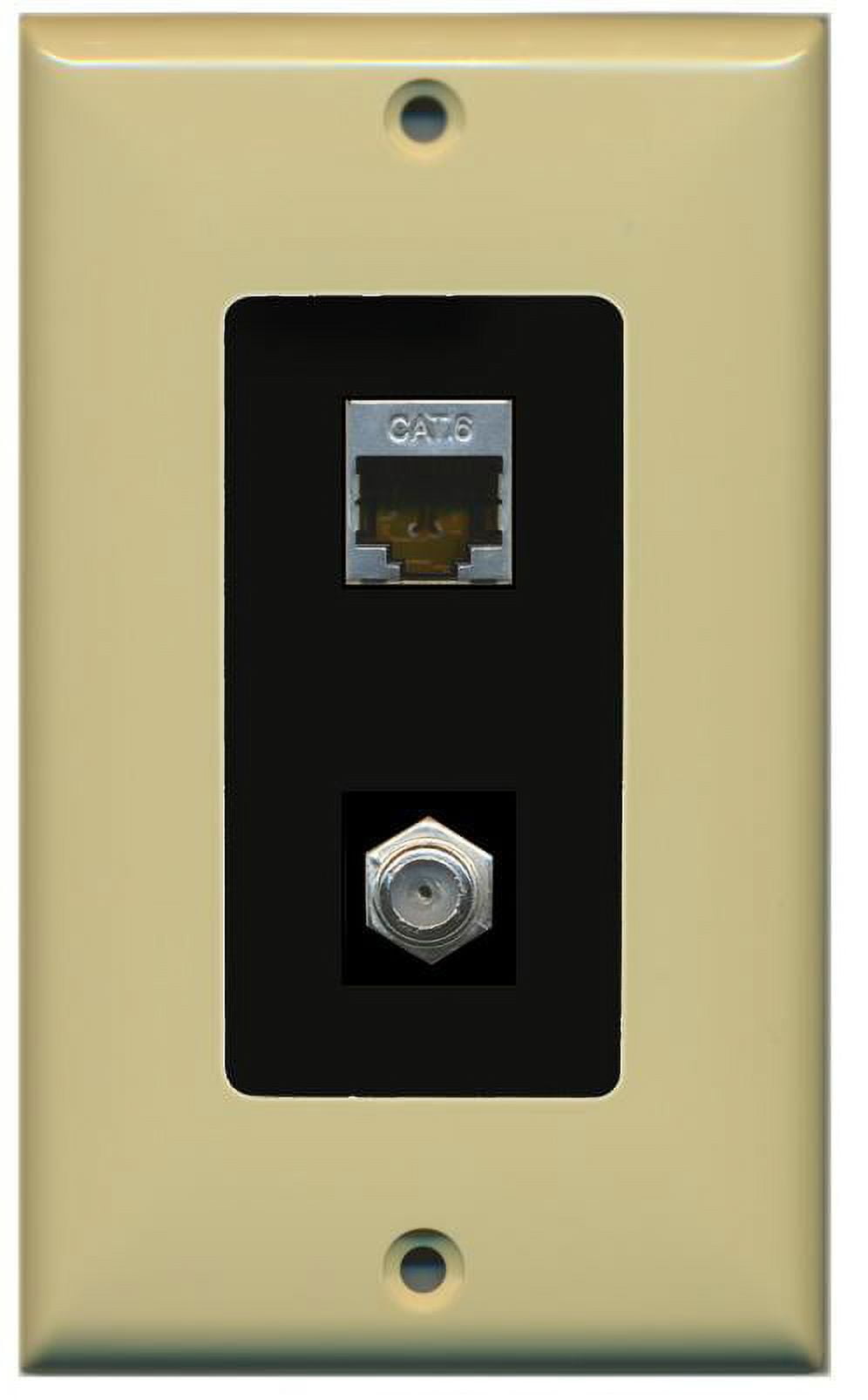 RiteAV Decorative 1 Gang Wall Plate (Ivory/Black) 2 Port - Cat6 (Shielded) Coax (Black) - Bracket Included