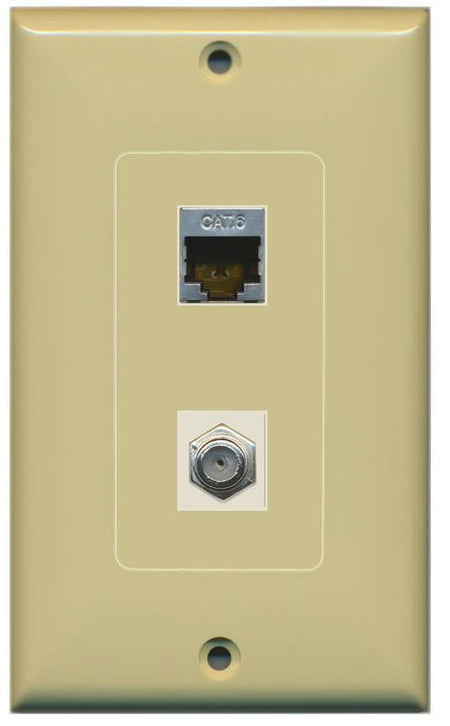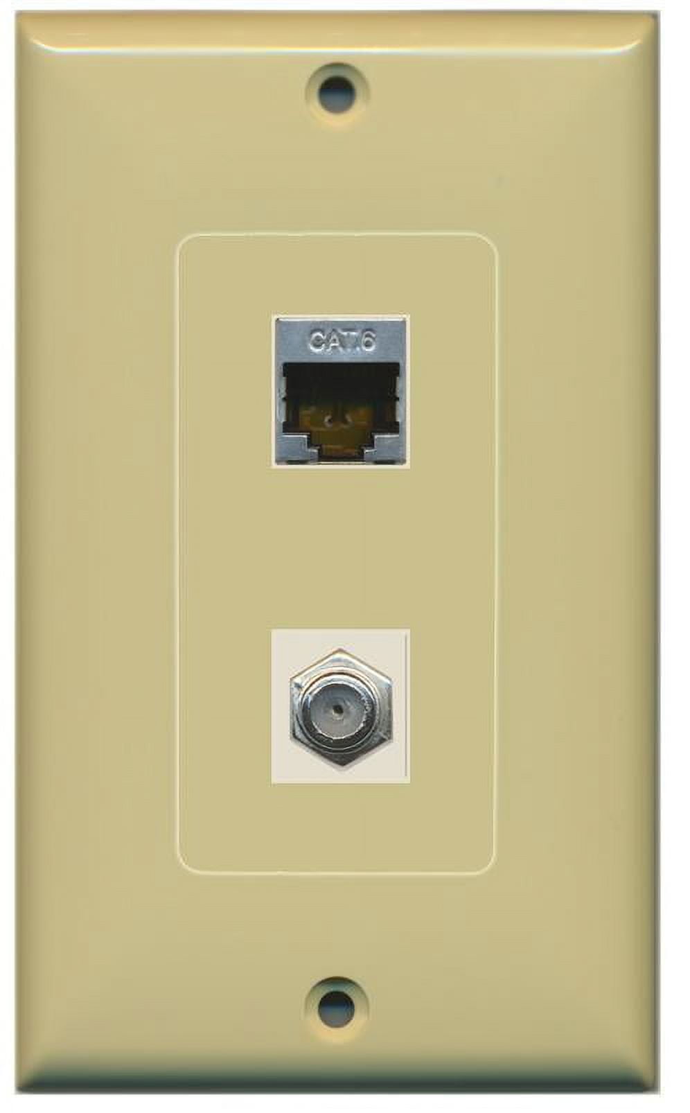 RiteAV Decorative 1 Gang Wall Plate (Ivory/Ivory) 2 Port - Cat6 (Shielded) Coax (Ivory) - Bracket Included