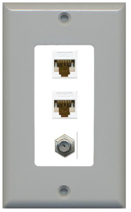 RiteAV Decorative 1 Gang Wall Plate (Gray/White) 3 Port - 2 x Cat6, 1 x Coax