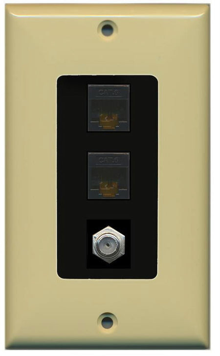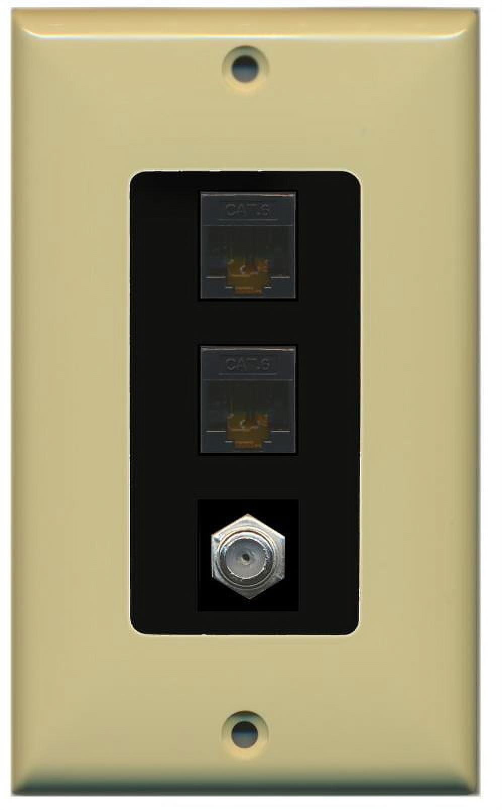 RiteAV Decorative 1 Gang Wall Plate (Ivory/Black) 3 Port - 2 x Cat6, 1 x Coax