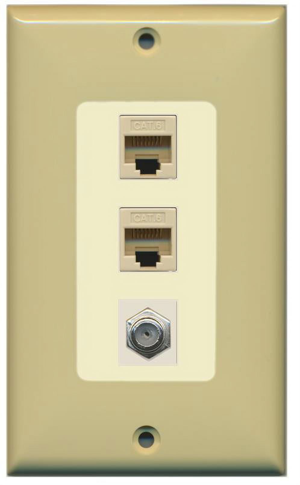 RiteAV Decorative 1 Gang Wall Plate (Ivory/Light Almond) 3 Port - 2 x Cat6, 1 x Coax