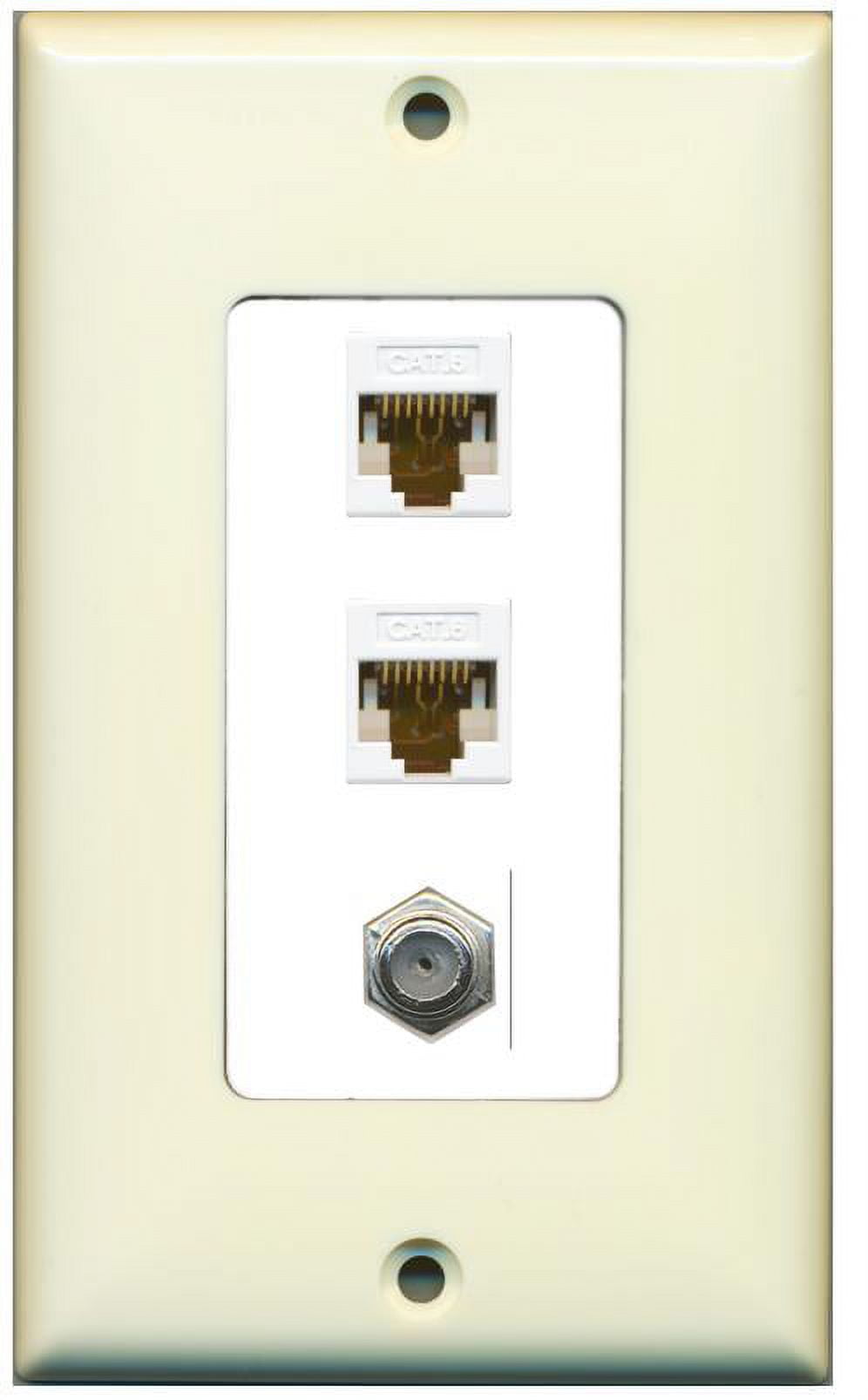 RiteAV Decorative 1 Gang Wall Plate (Light Almond/White) 3 Port - 2 x Cat6, 1 x Coax