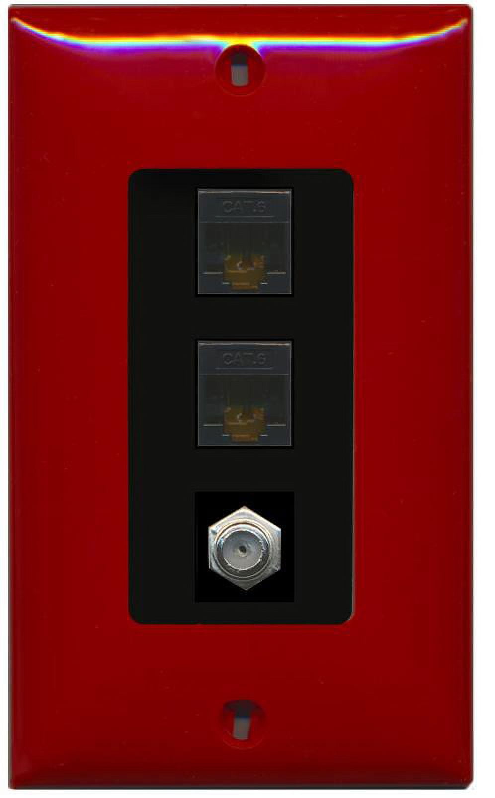 RiteAV Decorative 1 Gang Wall Plate (Red/Black) 3 Port - 2 x Cat6, 1 x Coax