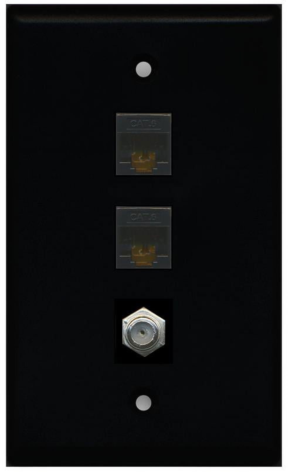 RiteAV 1 Gang Wall Plate (Black) 3 Port - 2 x Cat6, 1 x Coax