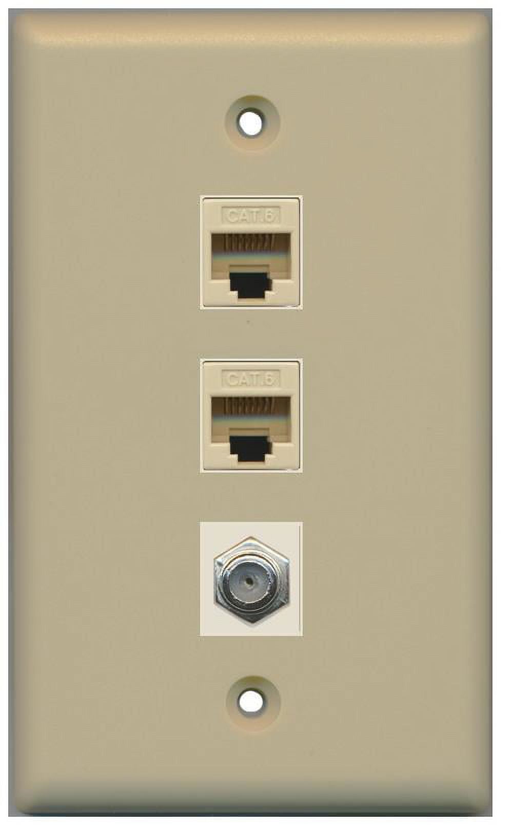 RiteAV 1 Gang Wall Plate (Ivory) 3 Port - 2 x Cat6, 1 x Coax