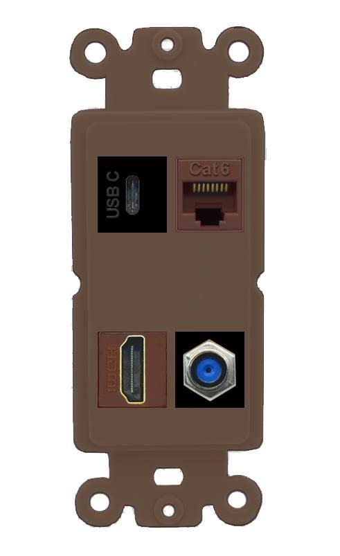 RiteAV USBC HDMI Cat6 Coax F81 Wall Plate - Rocker [Brown/Brown]