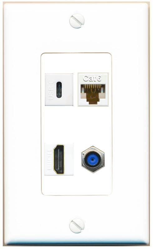 RiteAV USBC HDMI Cat6 Coax F81 Wall Plate - 1 Gang [White/White]