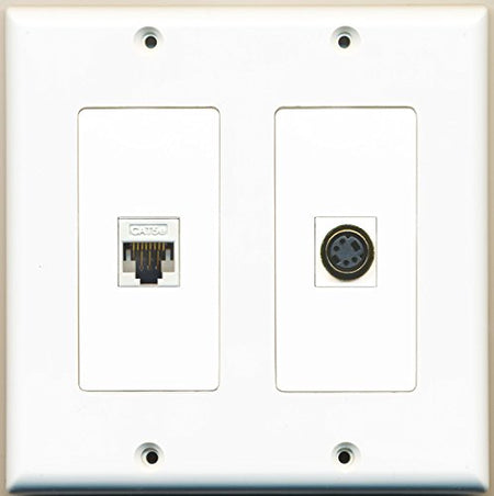 RiteAV - 1 Port S-Video 1 Port Cat5e Ethernet White - Dual Gang Wall Plate