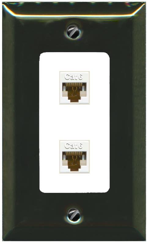 RiteAV 2 Port Cat6 Ethernet Wall Plate - 1 Gang [Brass/White]