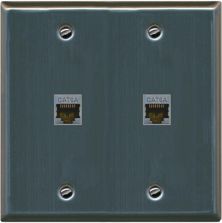 RiteAV 2 Port Cat6A Wall Plate - Flat 2 Gang [Stainless Steel]