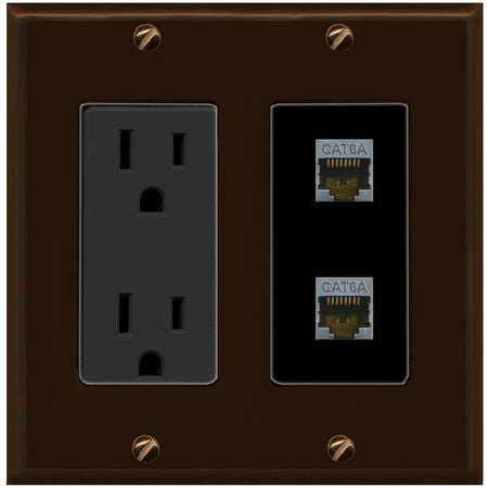 RiteAV 2 Port Cat6A Wall Plate - Outlet [Brown/Black]