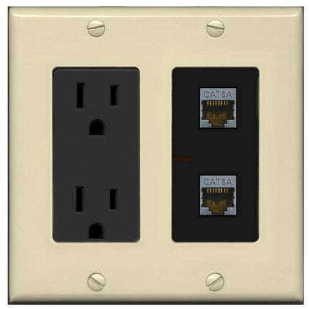 RiteAV 2 Port Cat6A Wall Plate - Outlet [Ivory/Black]