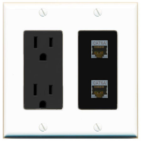 RiteAV 2 Port Cat6A Wall Plate - Outlet [White/Black]