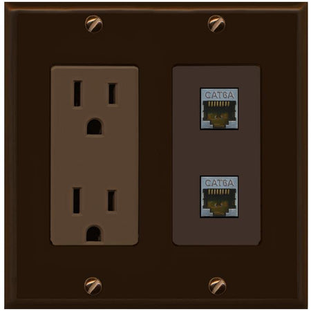 RiteAV 2 Port Cat6A Wall Plate - Outlet [Brown/Brown]