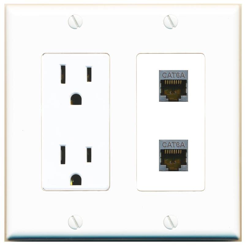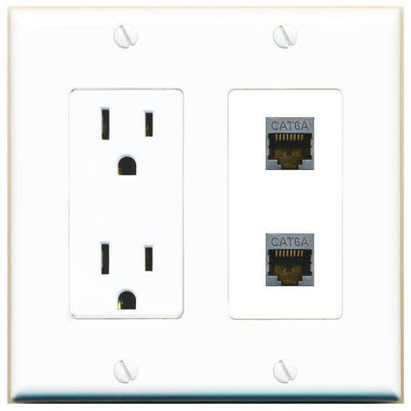 RiteAV 2 Port Cat6A Wall Plate - Outlet [White/White]