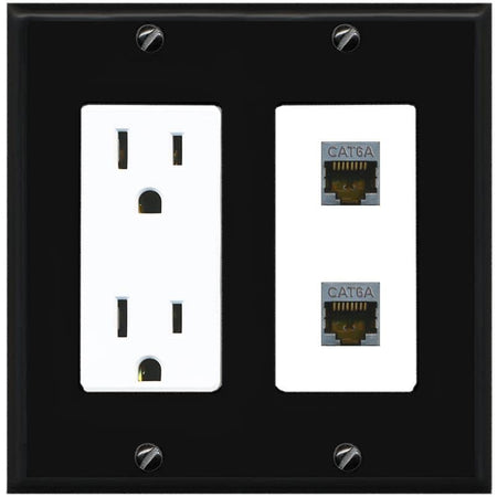 RiteAV 2 Port Cat6A Wall Plate - Outlet [Black/White]