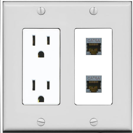 RiteAV 2 Port Cat6A Wall Plate - Outlet [Gray/White]
