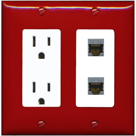 RiteAV 2 Port Cat6A Wall Plate - Outlet [Red/White]