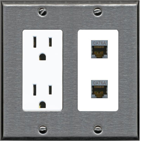 RiteAV 2 Port Cat6A Wall Plate - Outlet [Stainless/White]