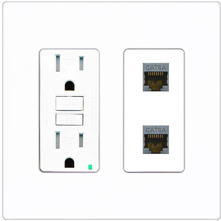RiteAV 2 Port Cat6A Wall Plate - GFCI [Screwless White]