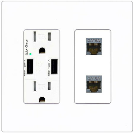 RiteAV 2 Port Cat6A Wall Plate - USB Charger [Screwless White]