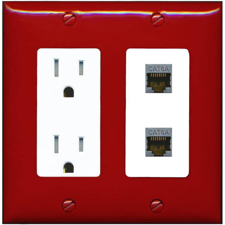 RiteAV 2 Port Cat6A Wall Plate - Tamper-Resistant [Red/White]
