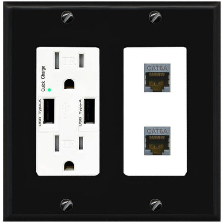 RiteAV 2 Port Cat6A Wall Plate - USB Charger [Black/White]