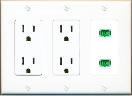 RiteAV 2 Port Fiber Optic Coupler Jack SC Simplex Singlemode APC Wall Plate-2 Outlet White