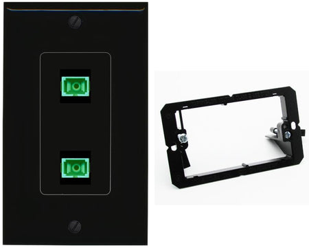 RiteAV 2 Port Fiber Optic Coupler Jack SC Simplex Singlemode APC Wall Plate-Bracket Black/Black