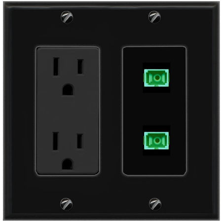 RiteAV 2 Port Fiber Optic Coupler Jack SC Simplex Singlemode APC Wall Plate-Outlet Black/Black