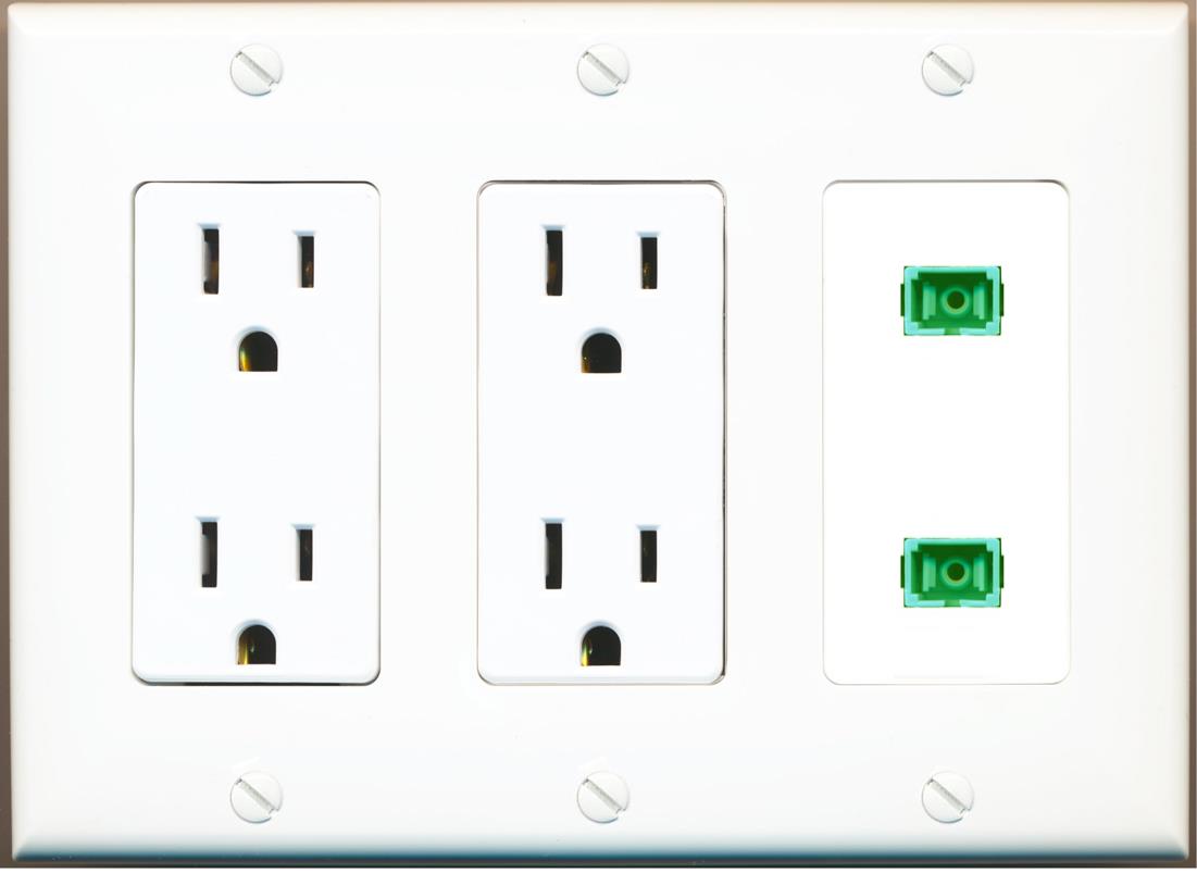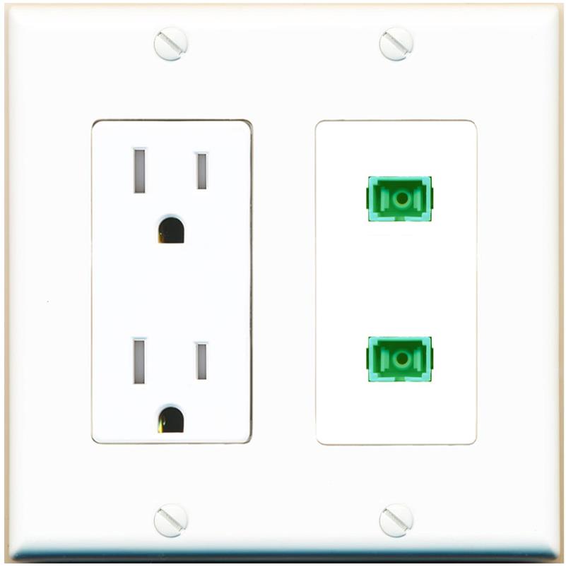 Decrease quantity for RiteAV 2 Port Fiber Optic Coupler Jack SC Simplex Singlemode APC Wall Plate-1 Gang White