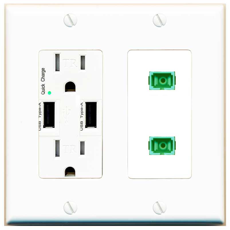 Increase quantity for RiteAV 2 Port Fiber Optic Coupler Jack SC Simplex Singlemode APC Wall Plate-1 Gang White