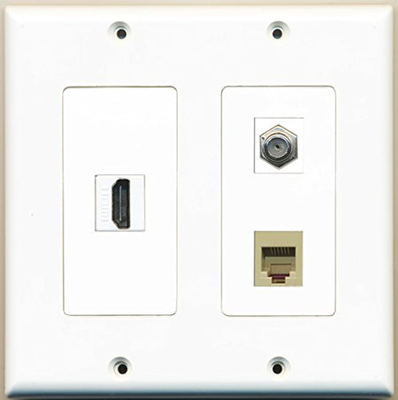 RiteAV - 1 Port HDMI 1 Port Coax Cable TV- F-Type 1 Port Phone RJ11 RJ12 Beige - 2 Gang Wall Plate