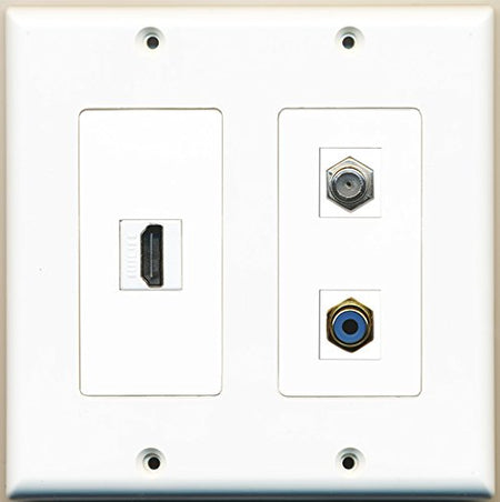 RiteAV - 1 Port HDMI 1 Port RCA Blue 1 Port Coax Cable TV- F-Type - 2 Gang Wall Plate