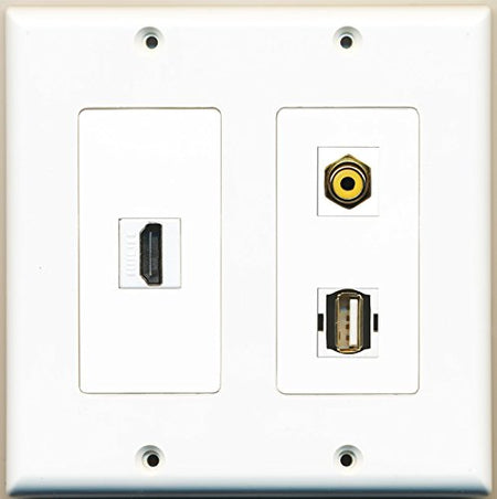RiteAV - 1 Port HDMI 1 Port RCA Yellow 1 Port USB A-A - 2 Gang Wall Plate