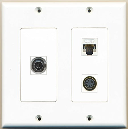 RiteAV - 1 Port S-Video 1 Port 3.5mm 1 Port Cat5e Ethernet White - 2 Gang Wall Plate