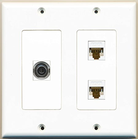 RiteAV - 1 Port 3.5mm 2 Port Cat6 Ethernet White - 2 Gang Wall Plate