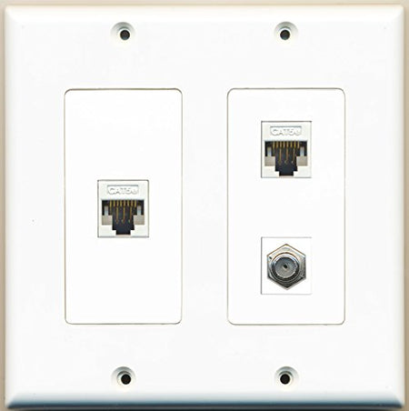 RiteAV - 1 Port Coax Cable TV- F-Type 2 Port Cat5e Ethernet White - 2 Gang Wall Plate