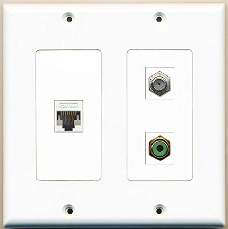 RiteAV - 1 Port RCA Green 1 Port Coax Cable TV- F-Type 1 Port Cat5e Ethernet White - 2 Gang Wall Plate