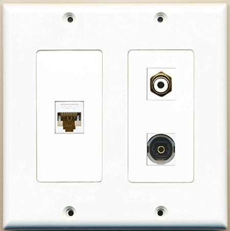 RiteAV - 1 Port RCA White 1 Port Toslink Digital Audio 1 Port Cat6 Ethernet White - 2 Gang Wall Plate