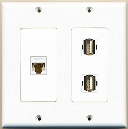 RiteAV - 2 Port USB A-A F/F 1 Port Cat6 Ethernet White - 2 Gang Wall Plate