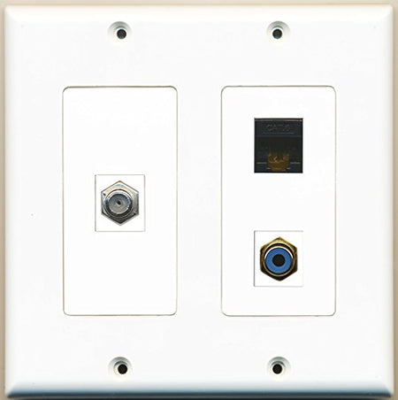 RiteAV - 1 Port RCA Blue 1 Port Coax Cable TV- F-Type 1 Port Cat6 Ethernet Black - 2 Gang Wall Plate